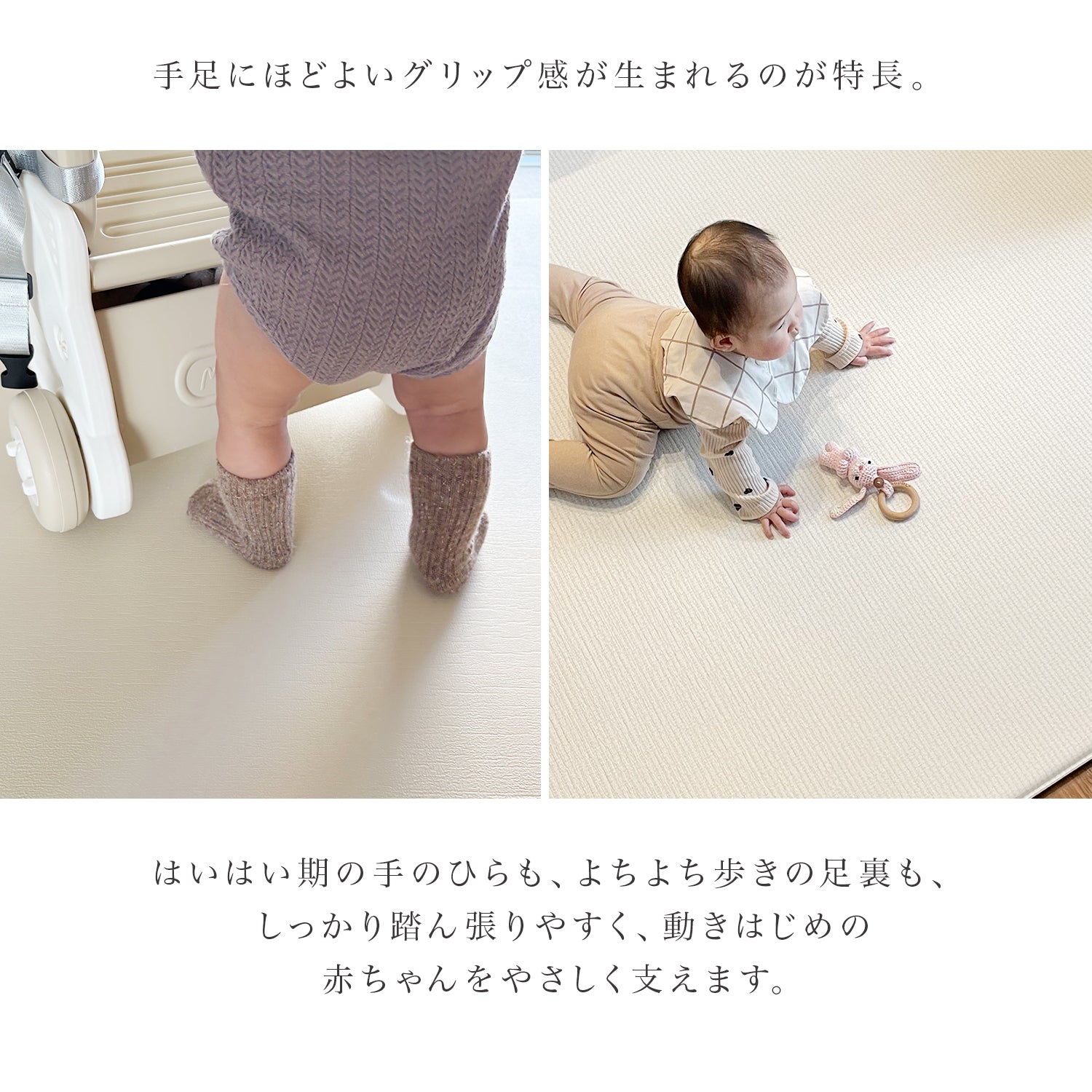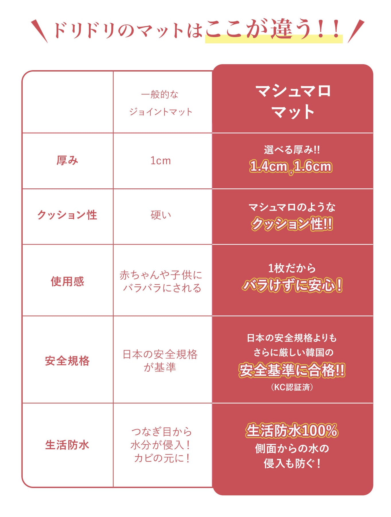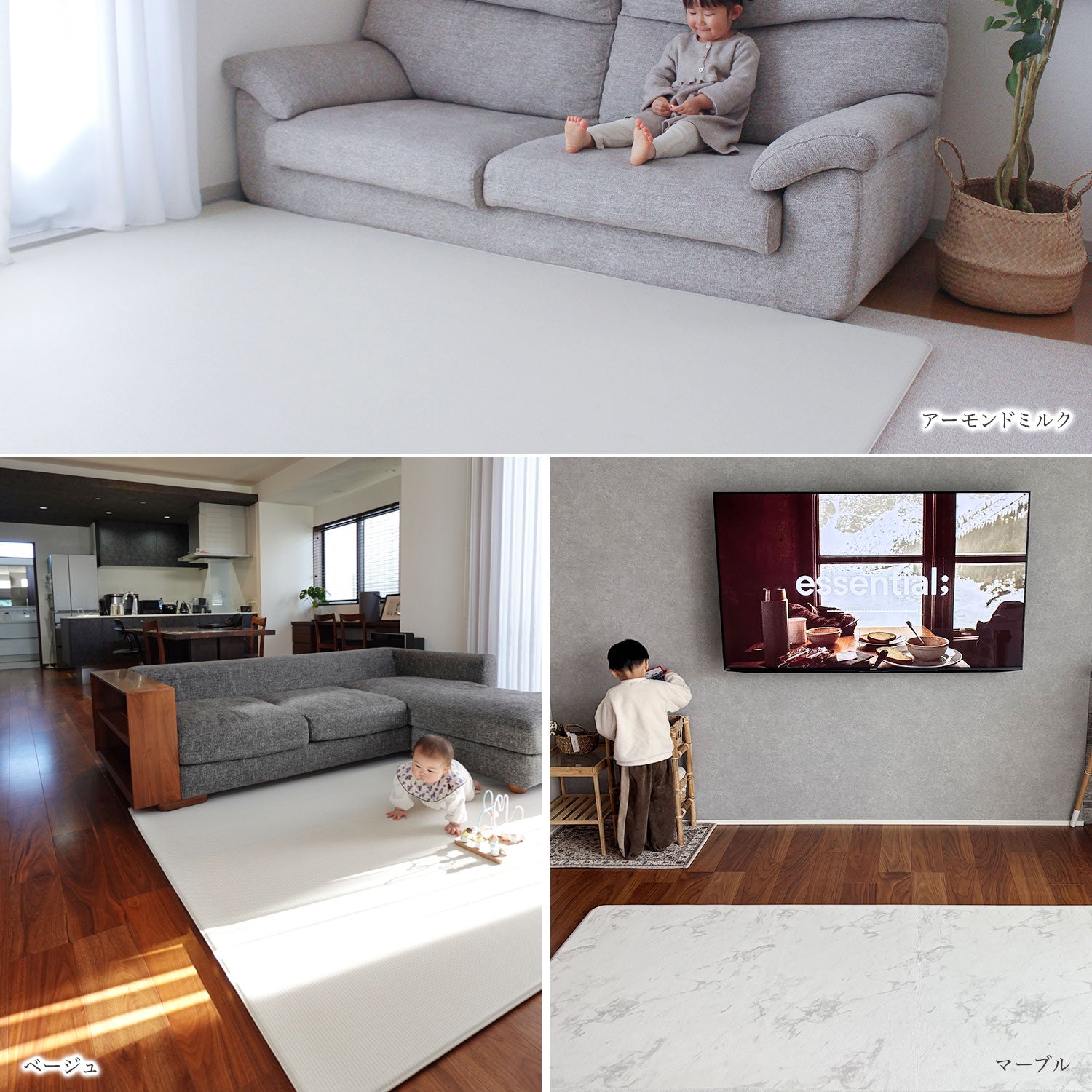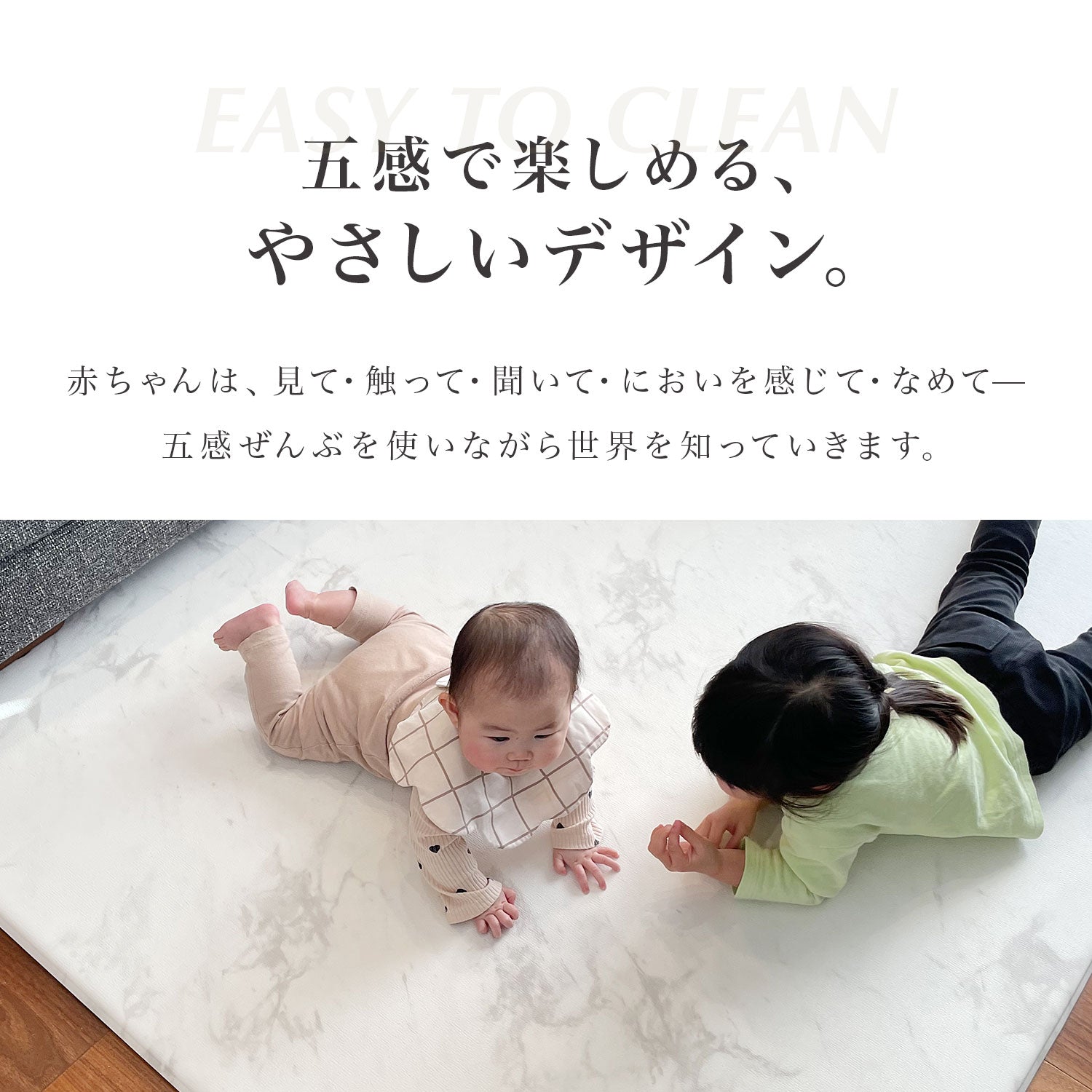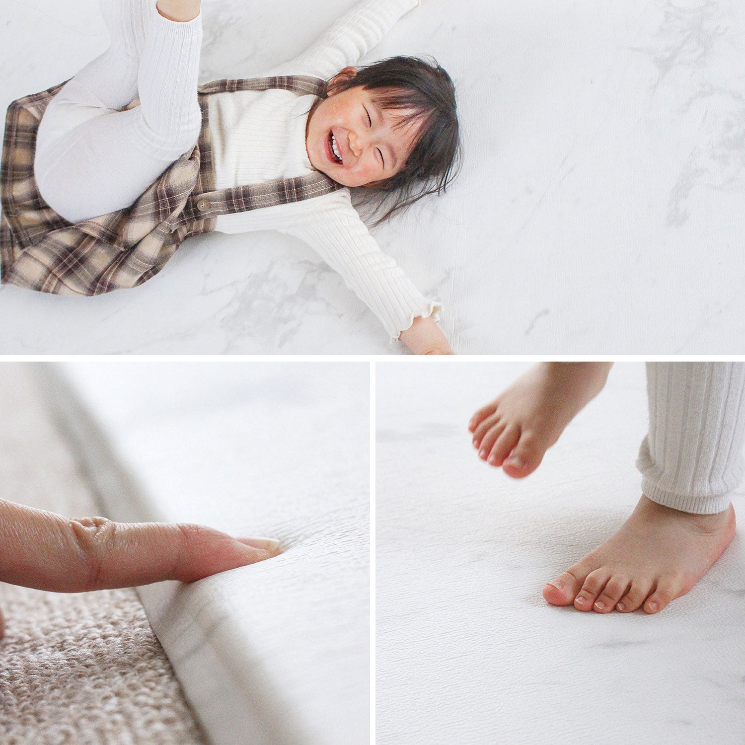 | 【マシュマロのような感触でお子様のごツンを守る!マシュマロマット】 滑りやすい床の安全対策におすすめ! オールシーズン快適なもっちりマシュマロマットが新登場♪ 小さなお子様にとって、フローリングなどの滑りやすい床は関節や足腰に負担がかかり、転倒時の思わぬケガに繋がる危険があります。 ケガ防止のためにも、遊ぶスペースや活動空間にはクッション性のあるマットを敷くなど安全対策を行うことが大切です。 マシュマロマットは、優れた密着力ですべり止め効果も抜群♪ 程よい厚みながら高密度のPVCがしっかり衝撃を吸収! 丈夫で破れにくく、復元力も◎ 足腰に負担をかけず、もっちりとした気持ちの良い踏み心地です。 また、側面まで100%防水でお手入れも簡単♪ 床との段差が少ないので、掃除機楽々・お掃除ロボもOK! リバーシブルで使えるので、マットも長持ちし模様替えにも◎ お部屋に自然と馴染むナチュラルなデザイン3色に 大人気のマーブルを裏面に使いました。 その日の気分やインテリア、模様替えに合わせて柄を変えれます。 使いやすい2種類のサイズからお好きなものをお選びいただけます。 使い勝手抜群のマットです。 ぜひお部屋の安全対策にご活用ください^^ |
